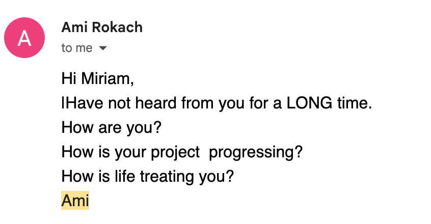 I met with Ami Rokach this week. We were recording an episode for my new video series—our conversation will be up soon. Candidly, I thought we’d lost touch until Ami sent me an email a few weeks ago. The one below.